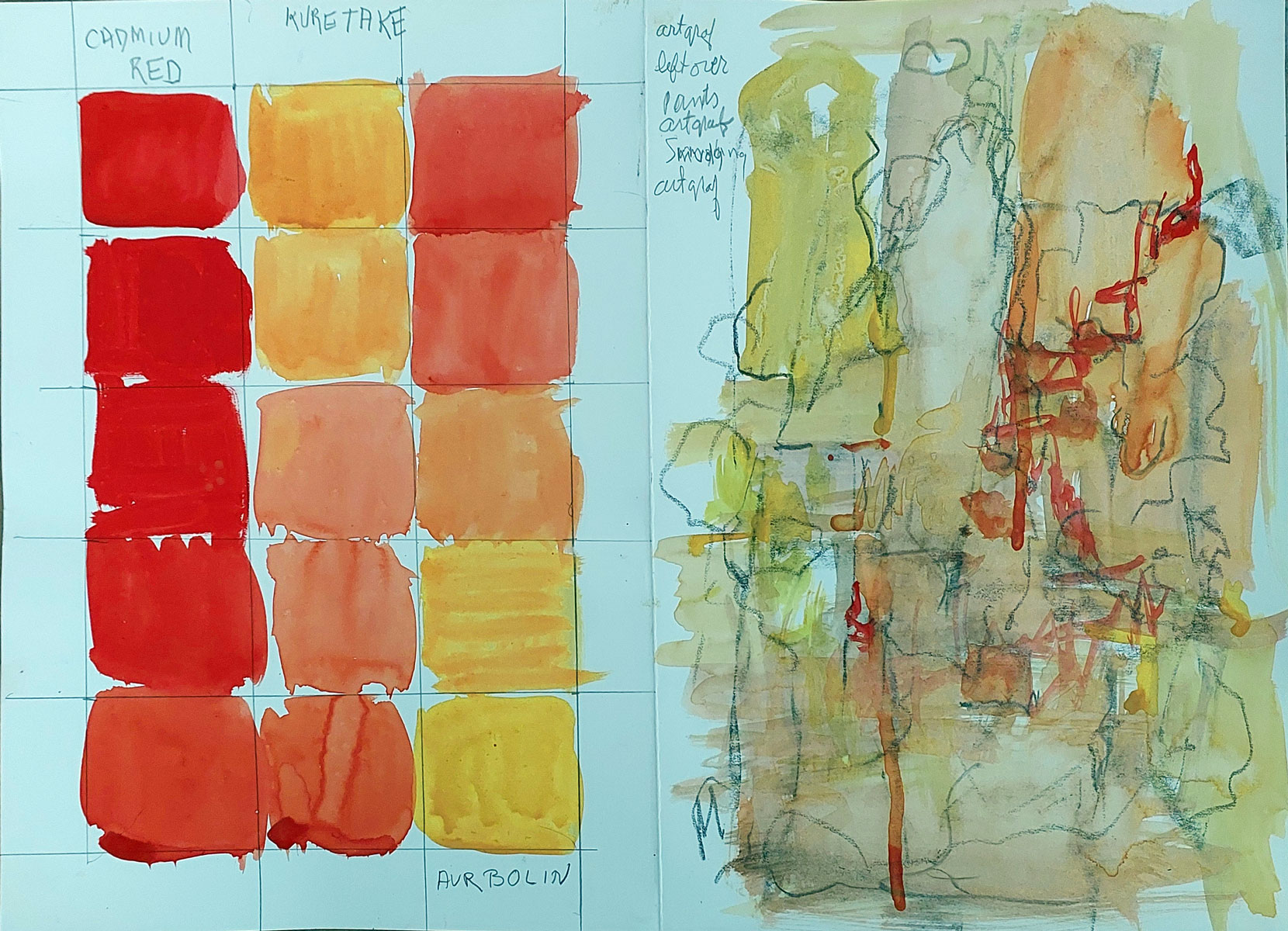 Spider 4th time this morning!Looking up at the ceilingone lonely spider,we missed him/herwhen mopping the webs,has cleaned the ceiling fromall the creepy crawlies. Click to Enlarge Click to Enlarge The poem came when lying on my back in my safe room. This is when I got the not so good idea to sleep at night in the safe room on an exercise mattress with blankets and pillows. Easy to get down but much more difficult to get up. Got what they call “piriformis syndrome” which later developed into sciatica! Which I am now treating with a physiotherapist. Different ways of making color charts from recent workshop with Sara Post. The winter workshop was all
