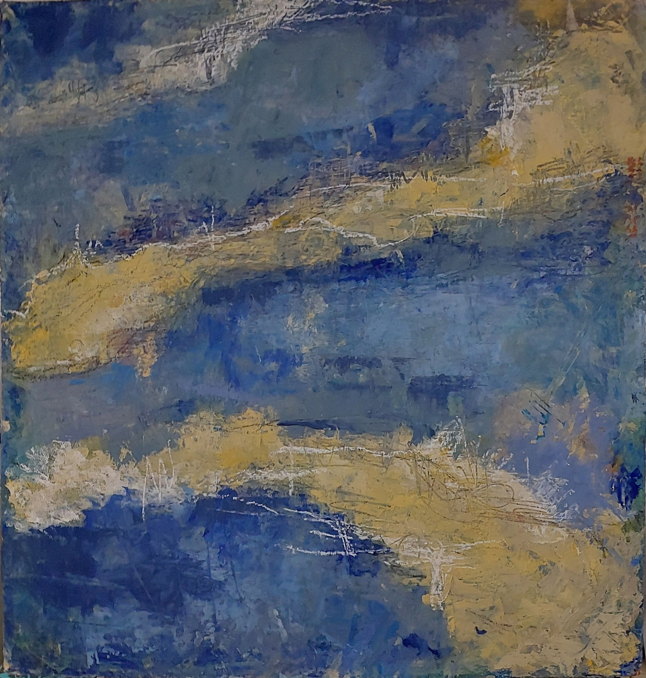 2. I see all those words in your poem, so maybe the bot changed its mind. Thank you for sharing. A life I cannot imagine living… Glad to see your paintings! I know how much you enjoy that medium. Such a contrast in blues between the two pieces. Layers of same painting? Two different days? Different moods? Maybe same painting from what you wrote?